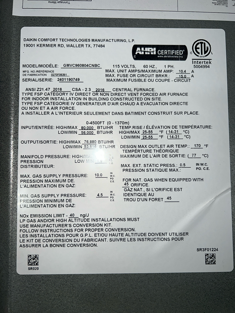 | Heating Type(s) | 2Gas Furnace x 2 / Years 2024 |