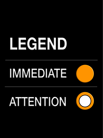 Every photo is FOCUSED & intentional. Solid orange = IMMEDIATE ATTENTION. Hollow orange = ATTENTION.